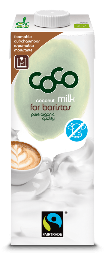 And you can enjoy original Dr. Antonio Martins’ coco milk for baristas knowing it is vegan, organic, Fairtrade certified and guaranteed GMO-free.